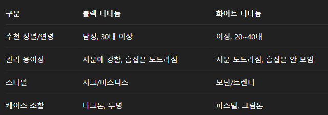 💬 6. 결론 – 블랙 티타늄이냐 화이트 티타늄이냐, 어떻게 선택할까?